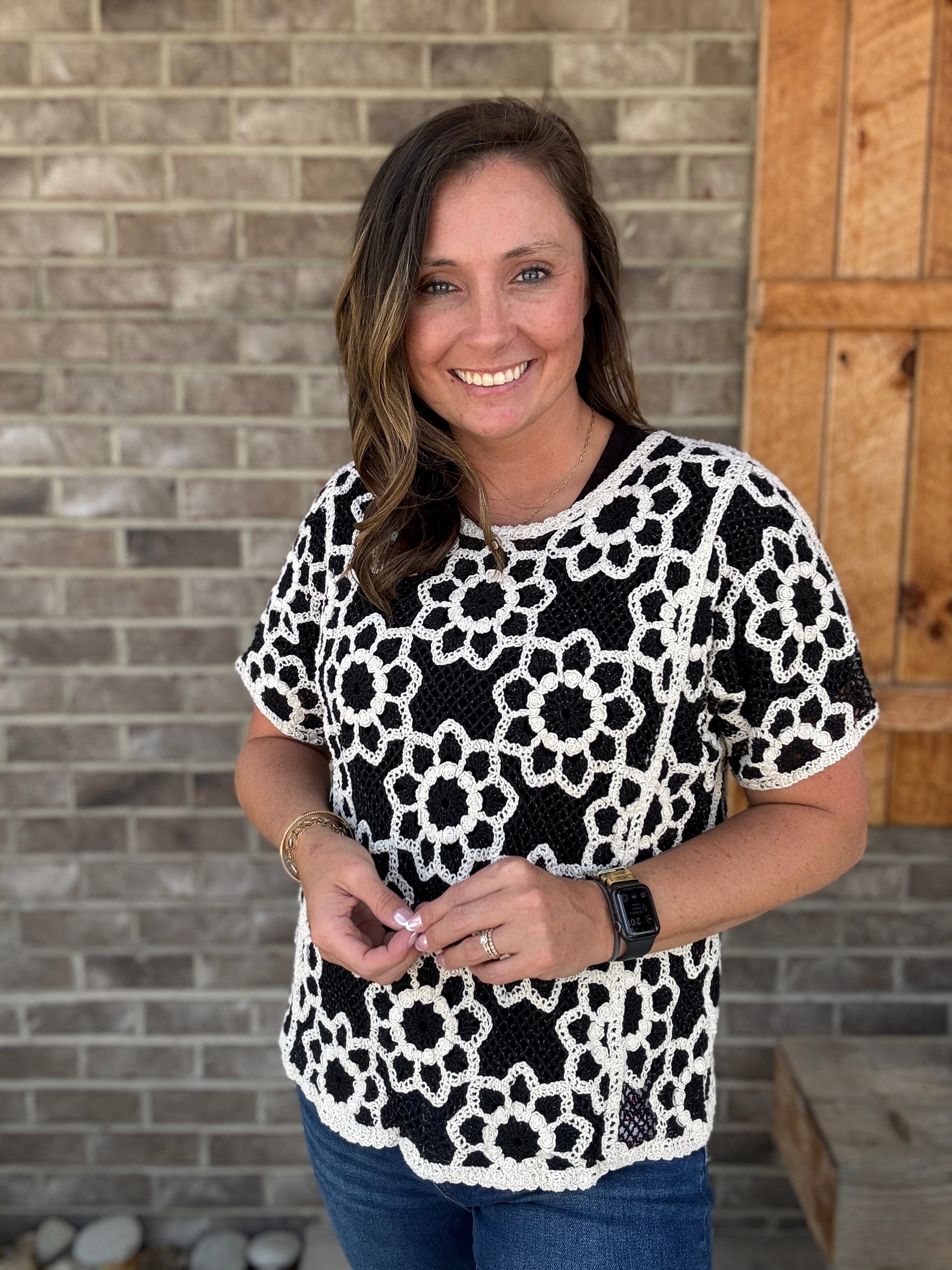 Black & Beige Crochet Pull Over Cover Up by POL