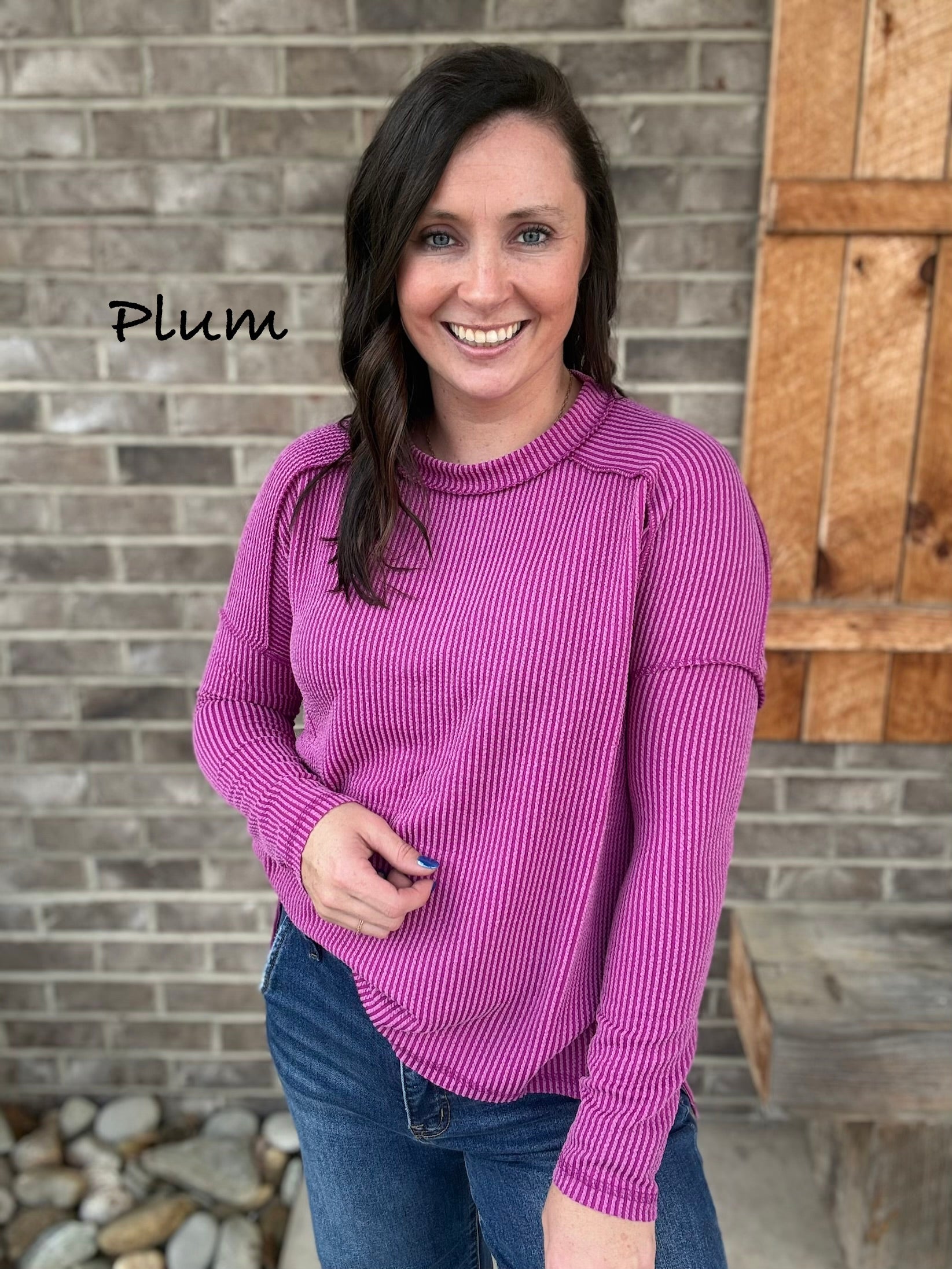 Meet your new go-to comfy top! This raised-rib long sleeve features a relaxed fit, raw-edge details, and a soft stretchy fabric that drapes beautifully. The boat neckline and high-low hem make it perfect for leggings, denim, or layering. Lightweight, cozy, and full of bright fuchsia goodness — you’ll want more than one!