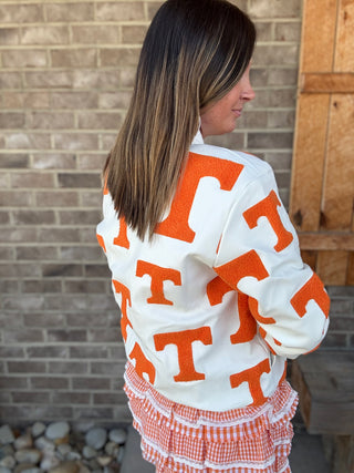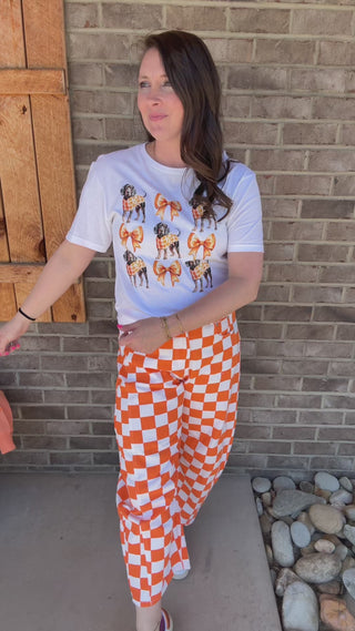 Orange & White Round Neck Tailgate Checkered Pullover *TN COLLECTION*