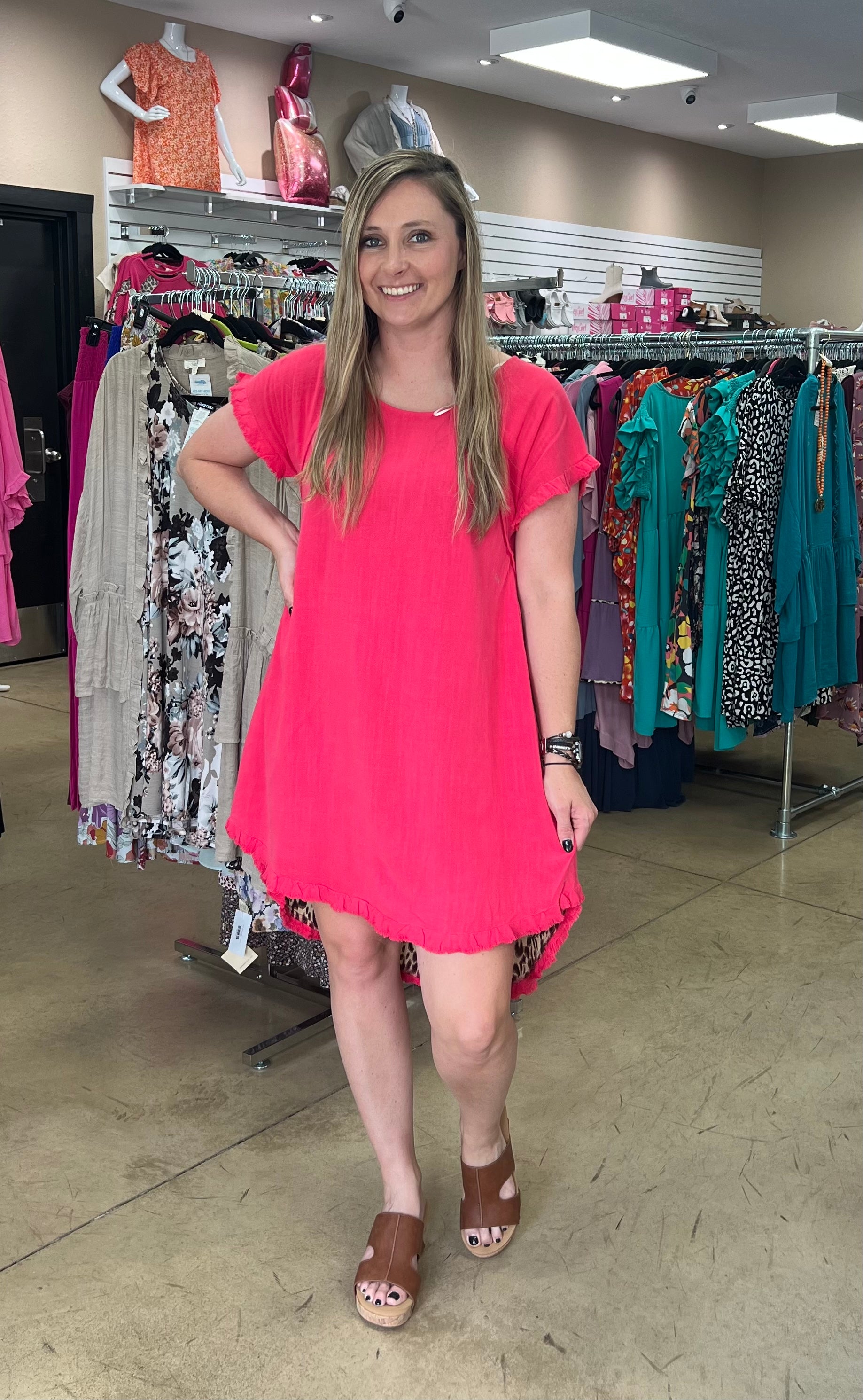 8278- Fuchsia Linen High Low Dress w/ Leopard Print Back Detail [UMGEE]